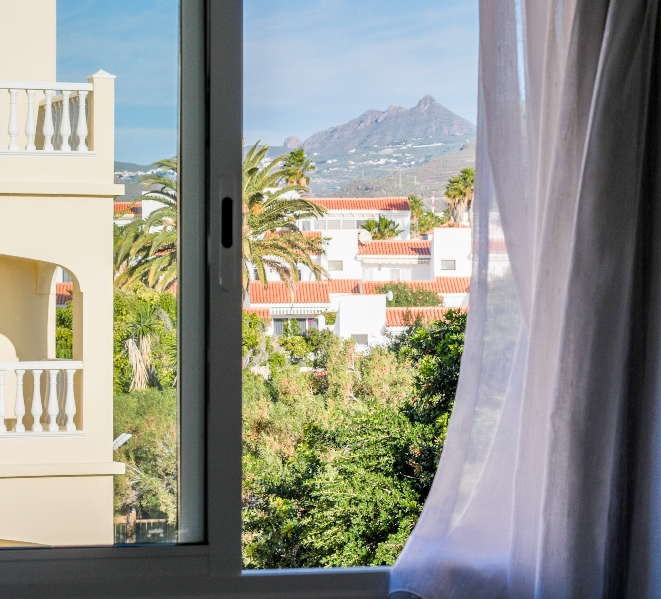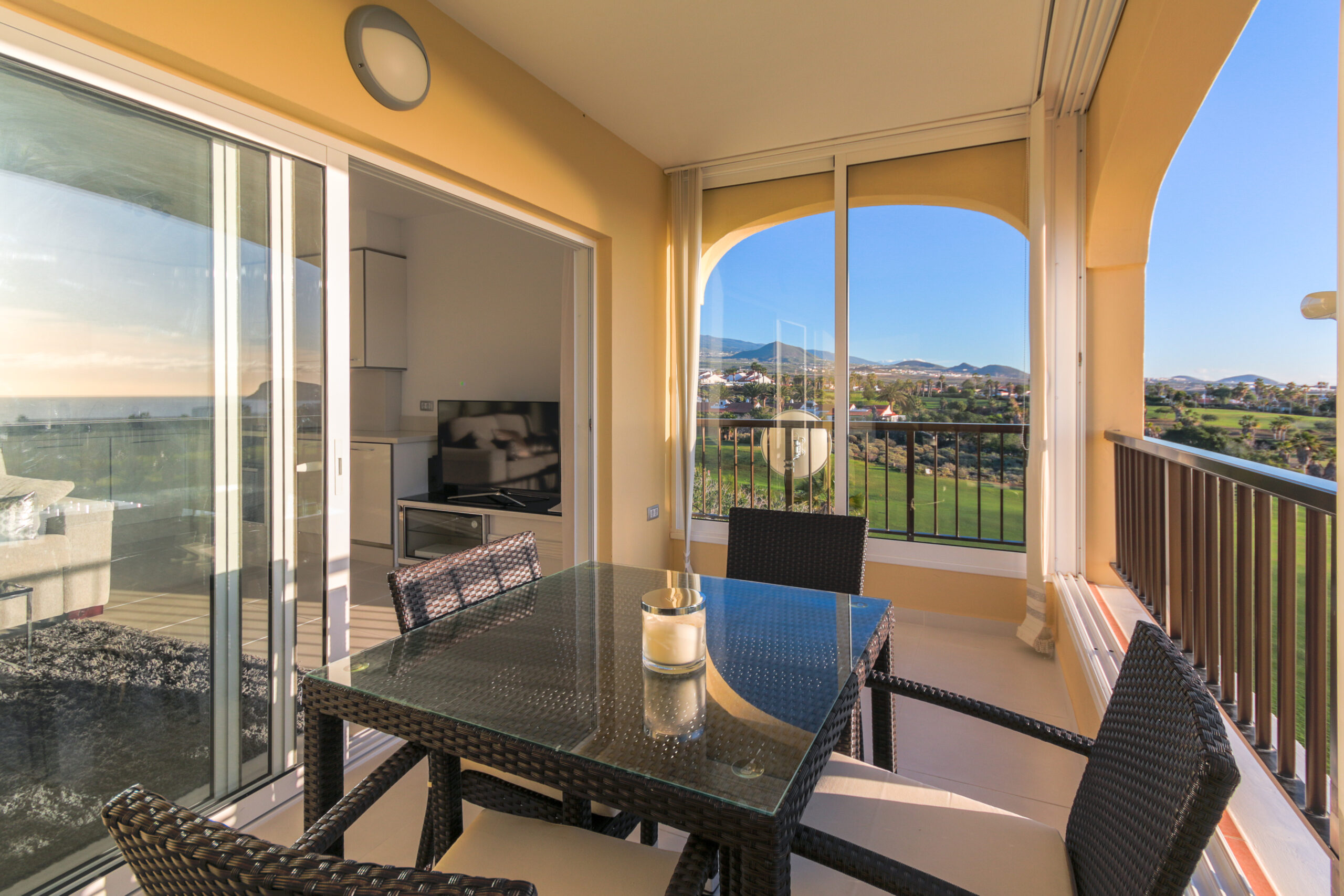 Duży, oszklony i zadaszony taras z przepięknym widokiem na Ocean Atlantycki i pola golfowe Amarilla Golf & Country Club. Ekspozycja wschodnia – można codziennie podziwiać wschodzące nad oceanem słońce, oświetlające pola golfowe i wybrzeże. Idealne miejsce na poranną kawę, śniadanie czy też wieczorny relaks z lampką wina. Mieszkanie jest dwustronne, z okien w sypialni widok na jeden z basenów oraz wyspę i wulkan Teide.